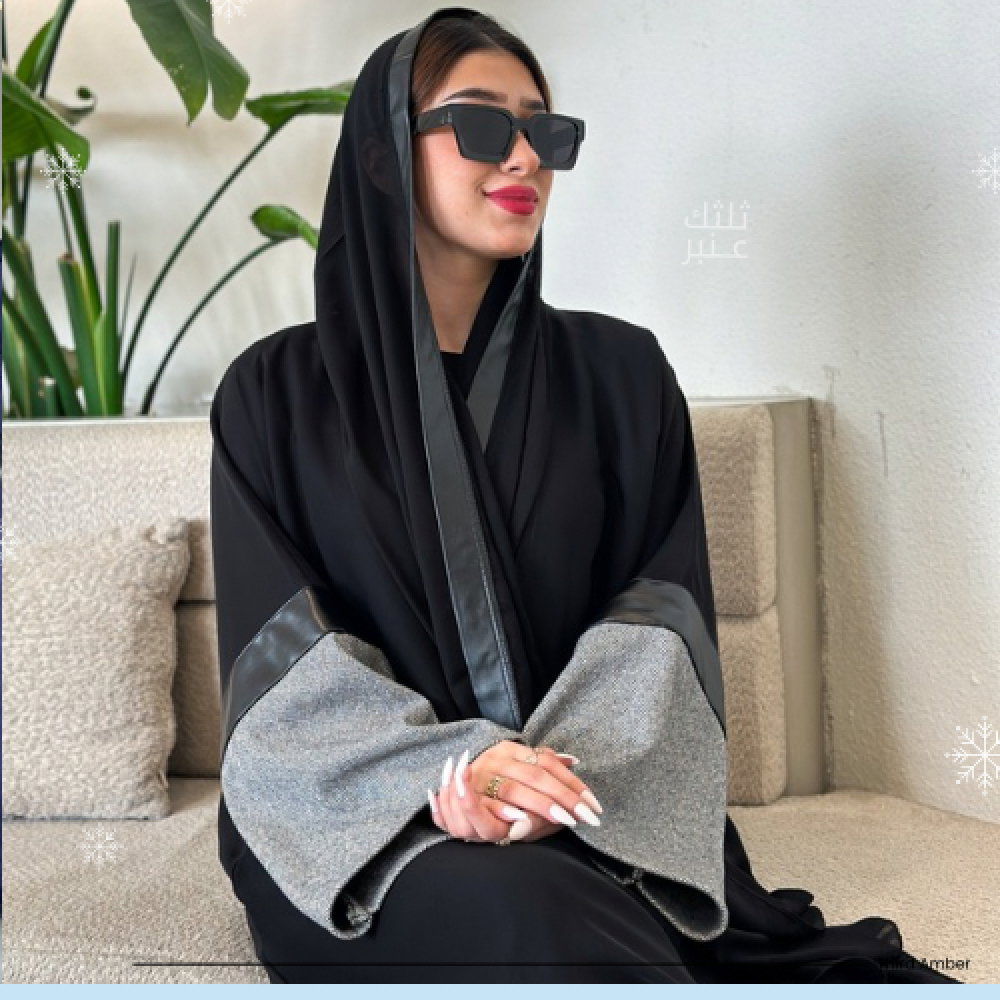 تفاصيل العباية : قماش إنترنت بتدخيلة جلد و آكمام صوف