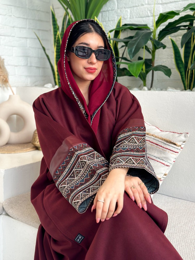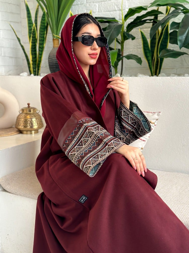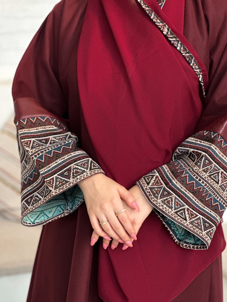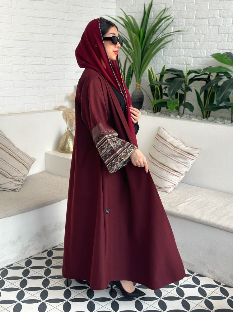 * قصة العباية : نص كلوش بـ بـ اكمام جلد وَ سدو عنابي..