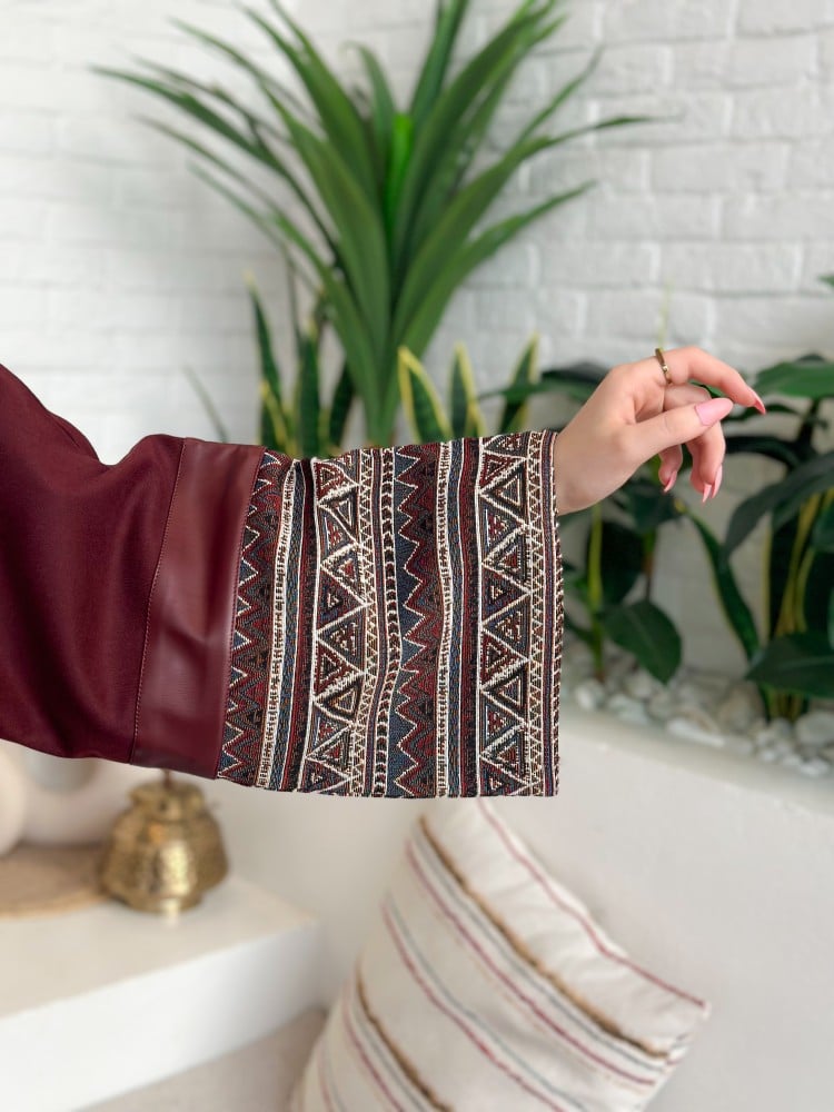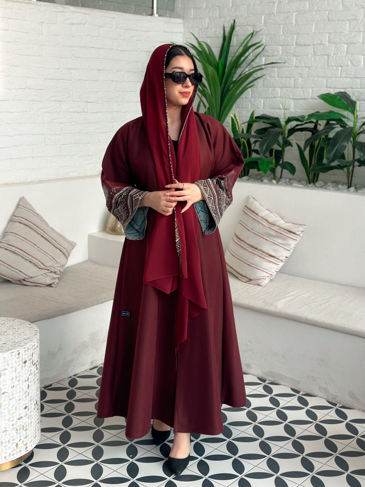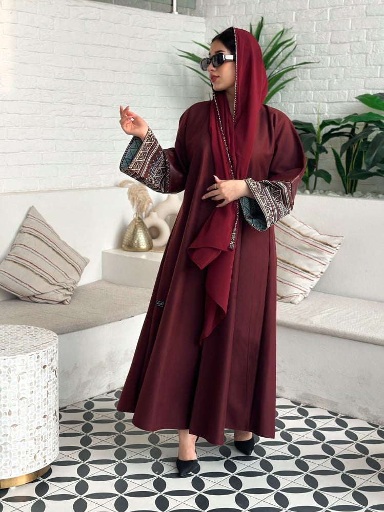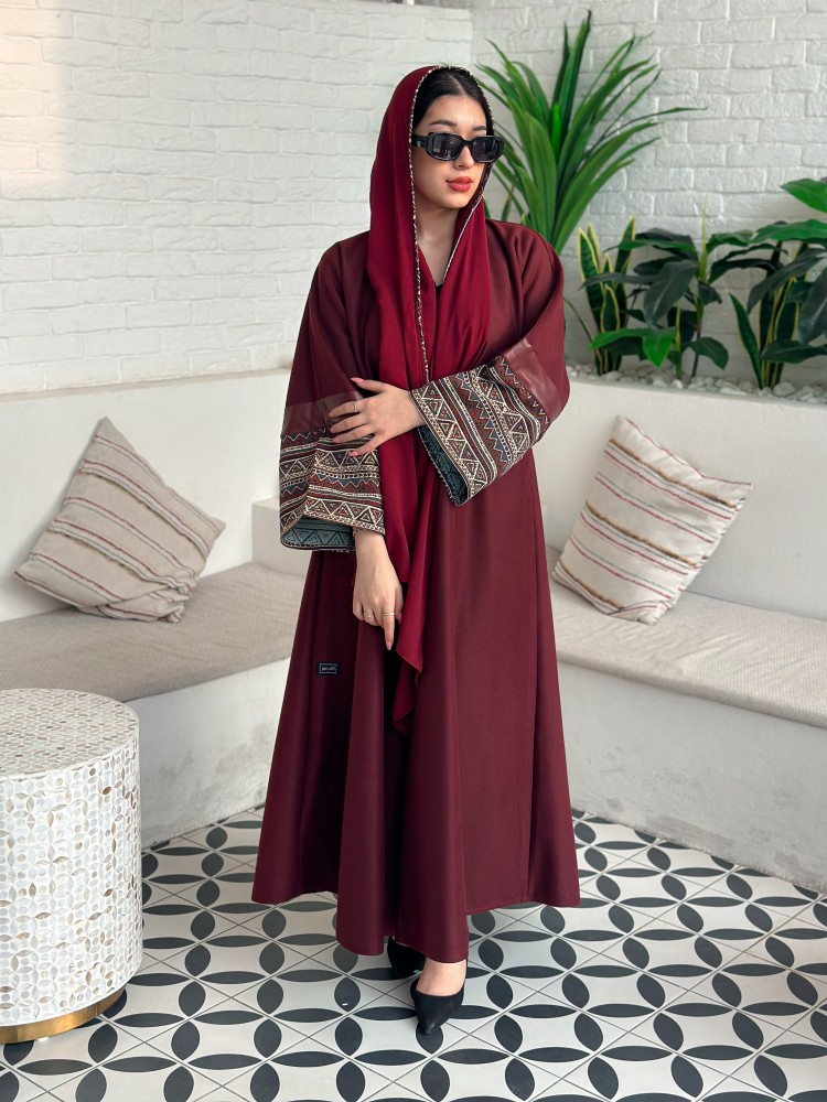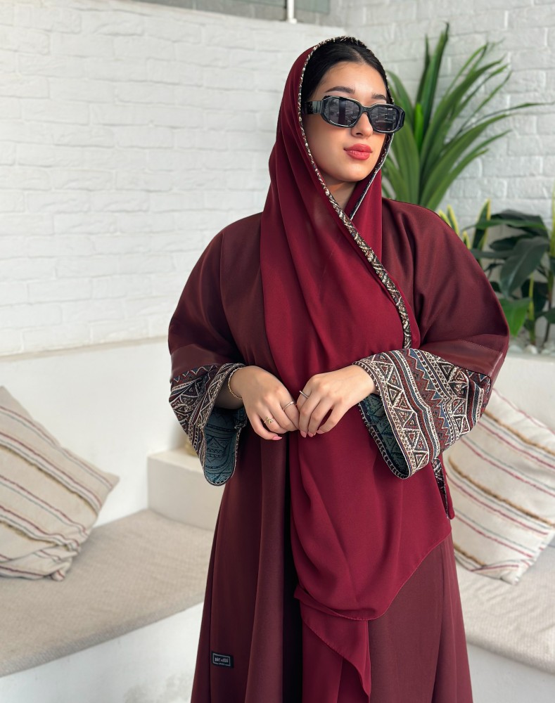 * قصة العباية : نص كلوش بـ بـ اكمام جلد وَ سدو عنابي..